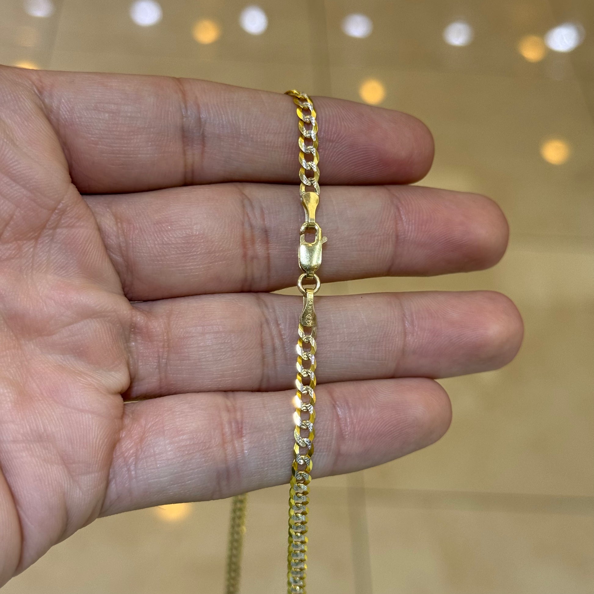 14k 3.5mm 2-Tone Diamond Cut Cuban Chain