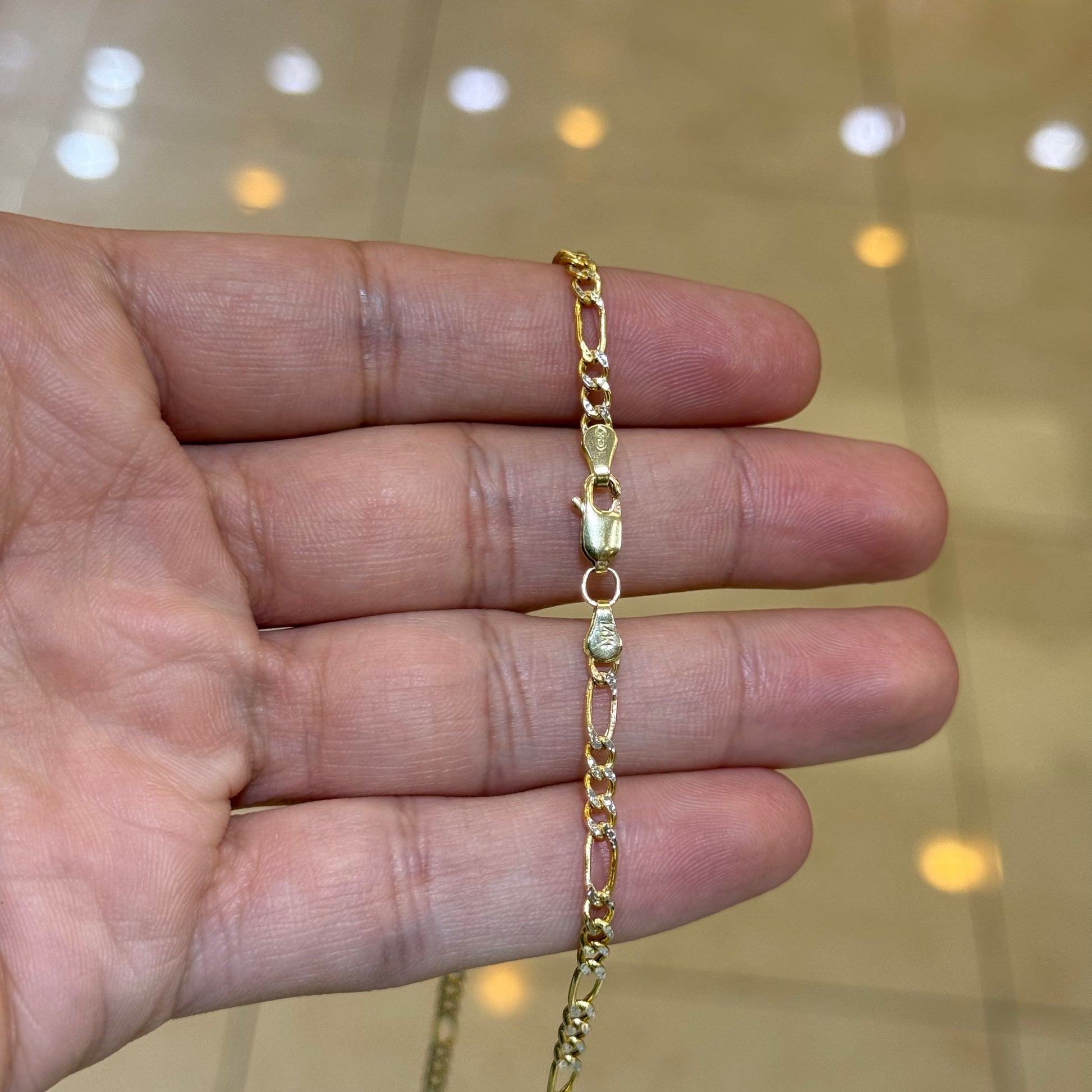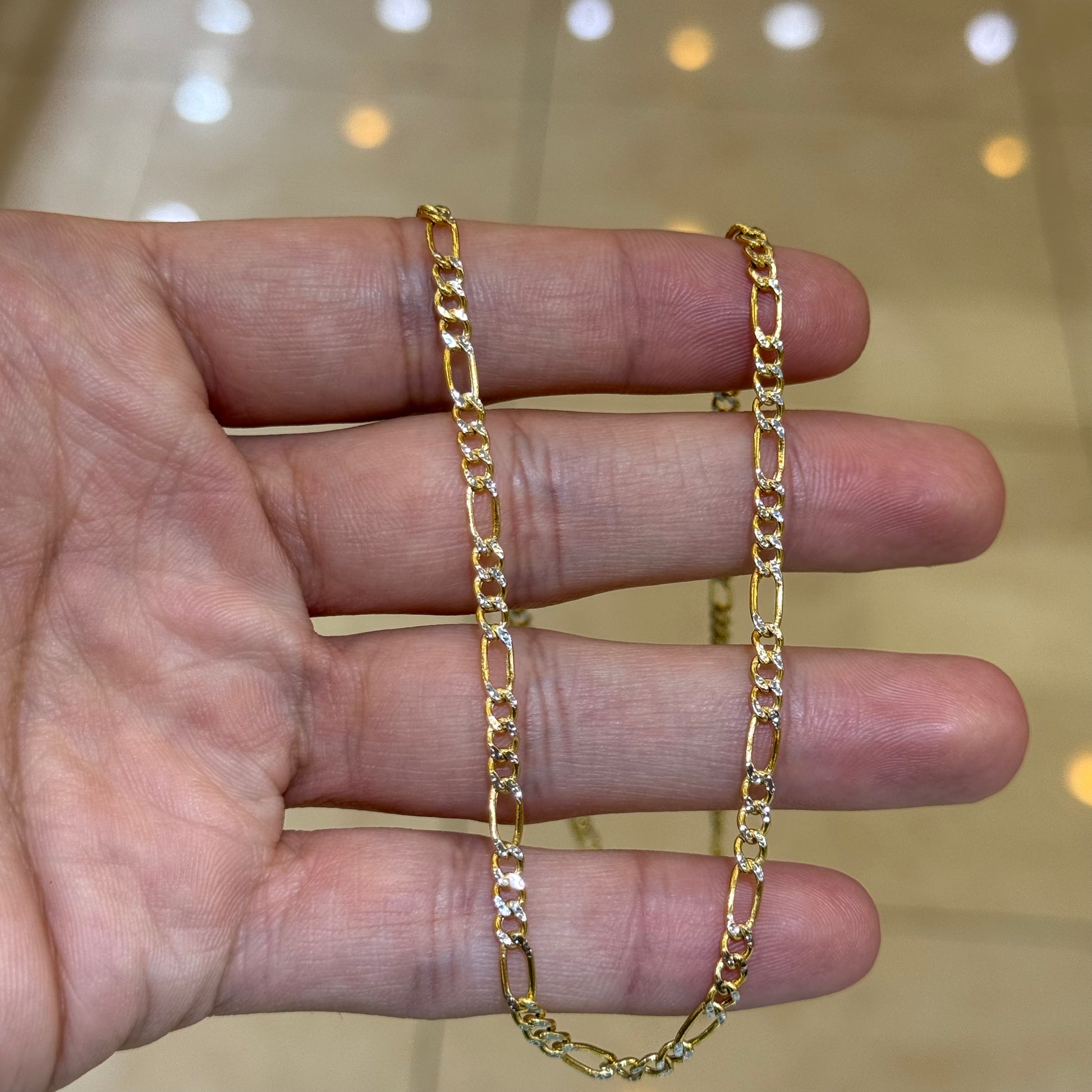 14k 3mm Semi Solid 2-Tone Diamond Cut Figaro Chain