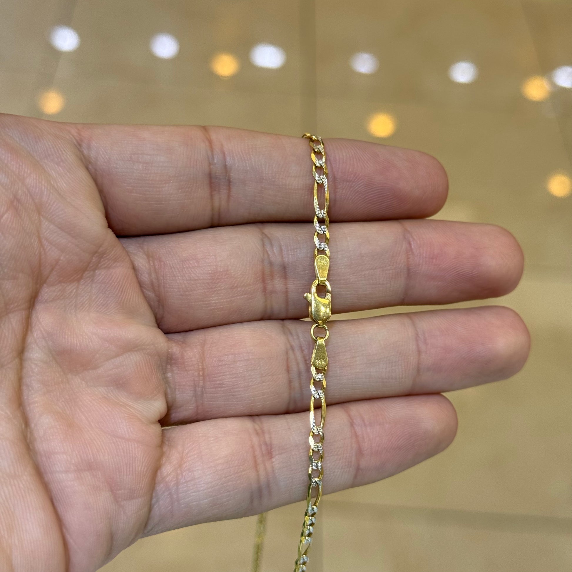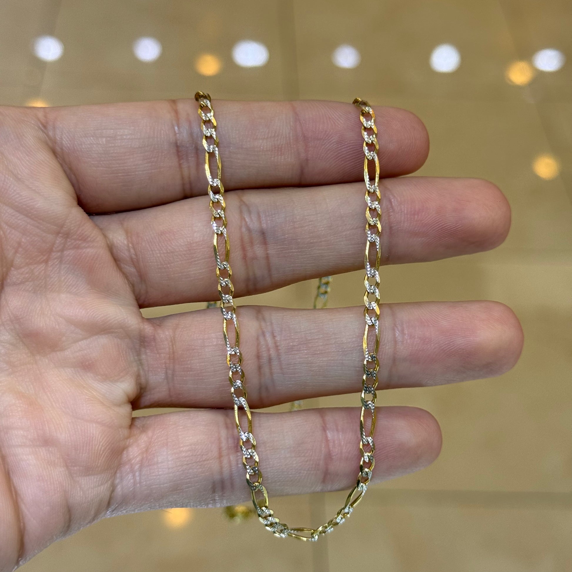 14k 3mm Solid 2-Tone Diamond Cut Figaro Chain