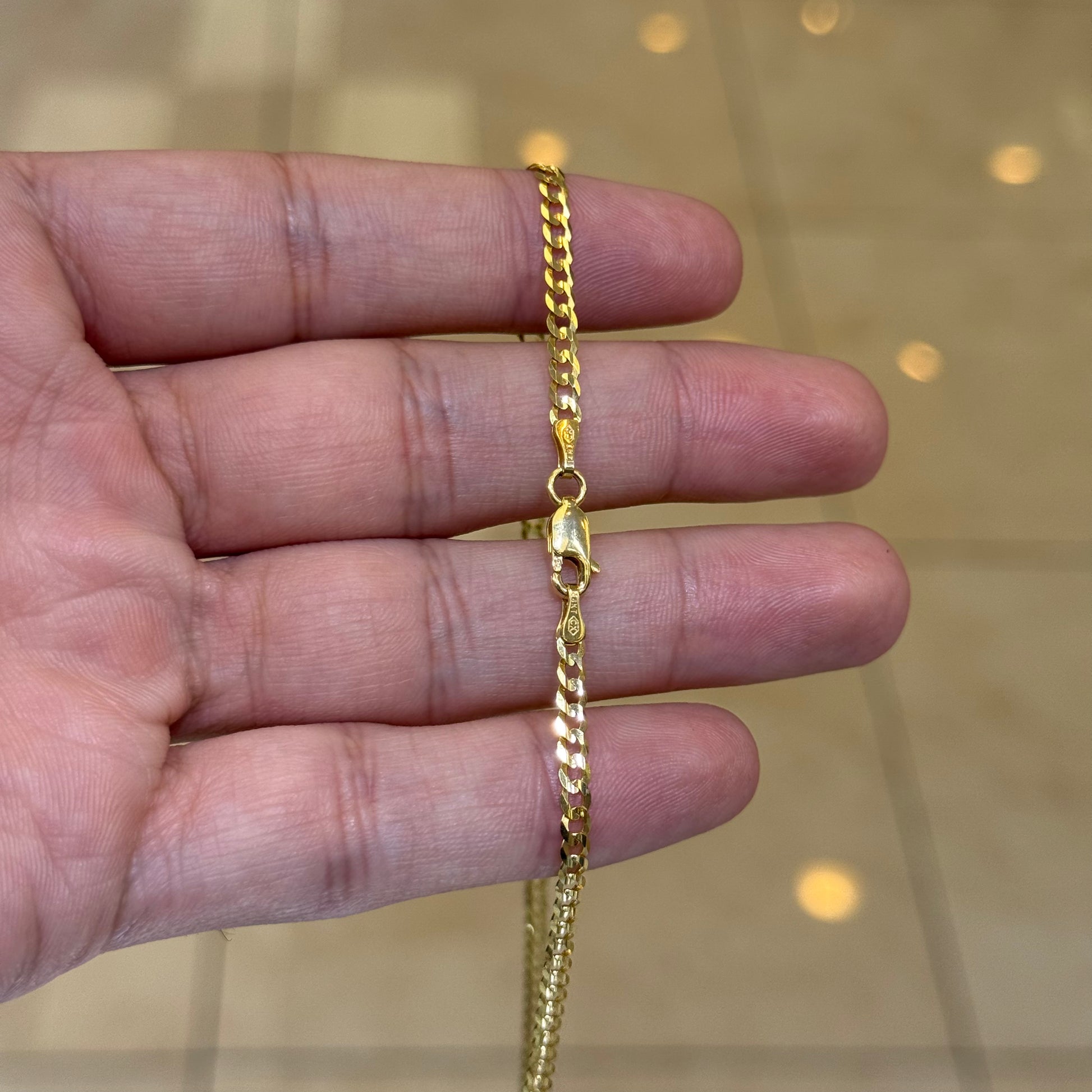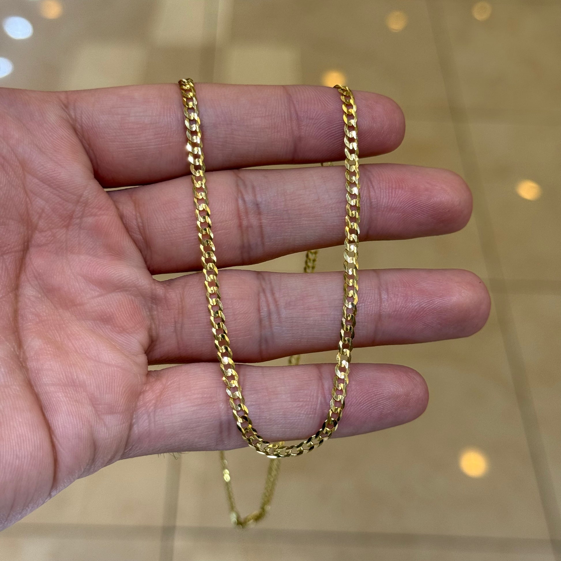 14k 3mm Solid Curb Cuban Link Chain
