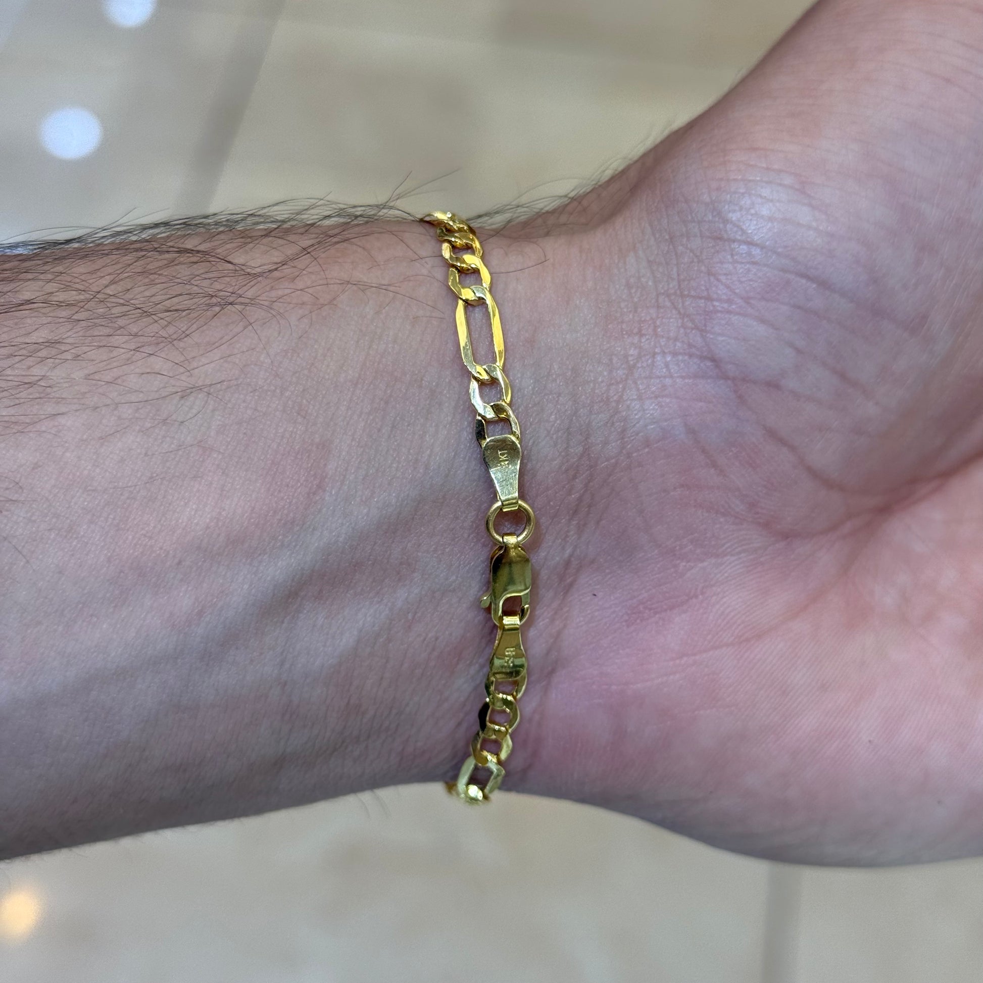 14k 4mm Semi Solid Figaro Link bracelet