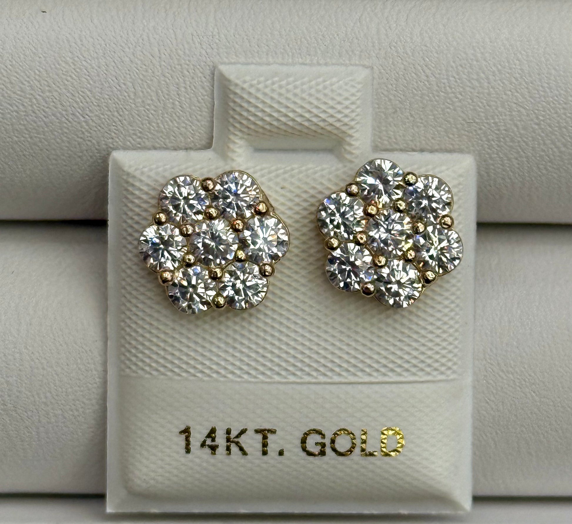 14k Large CZ Flower Earrings